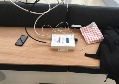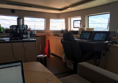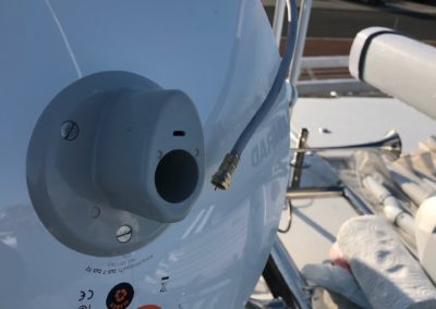 After discussion of needs, we decided to focus on ensuring high-performance cellular and shore WiFi connections. For optimum performance and range we used multiple antennas for each connection, Two antennas for the global cellular router, Two antennas for 2.4Ghz standard shore WiFi and another Two antennas for high-performance 5Ghz shore Wifi. This setup supports the highest performance cellular Internet and Shore WiFi, leveraging whatever shore connections that are available to the fullest.